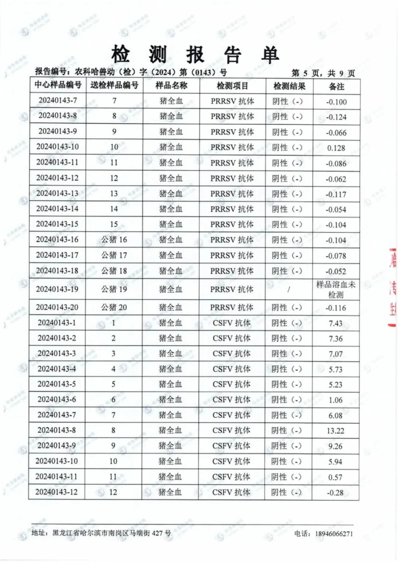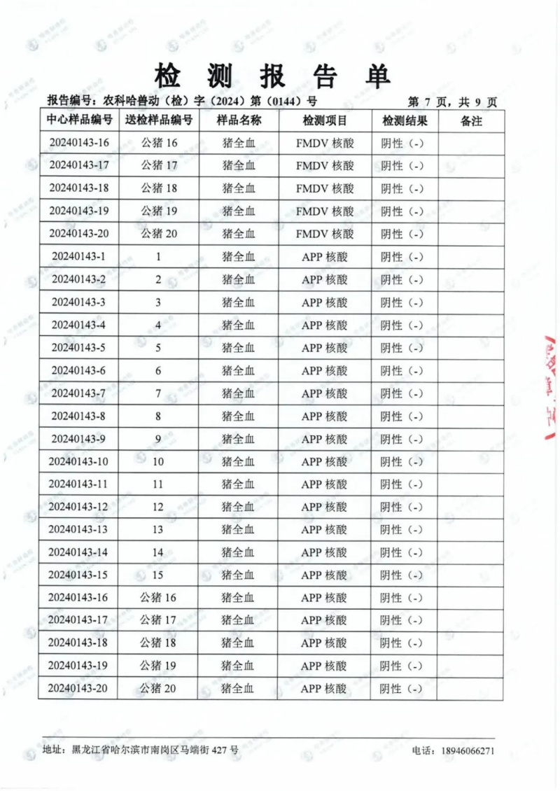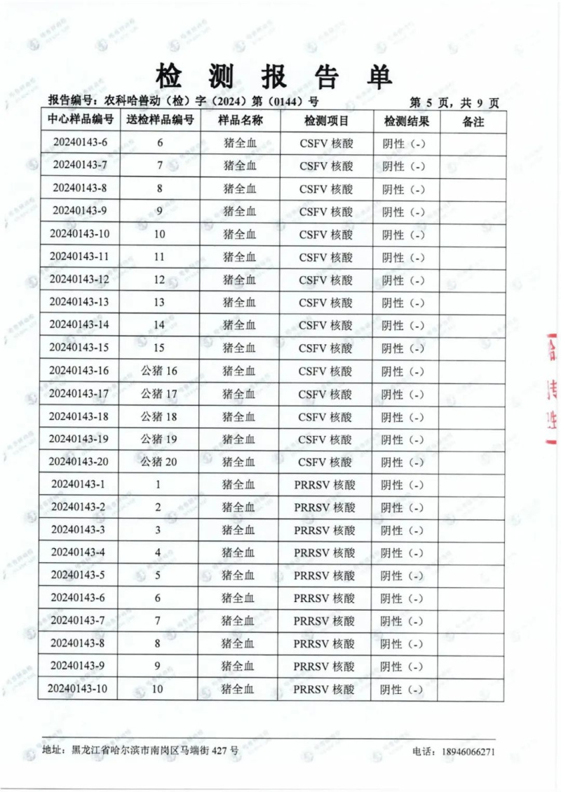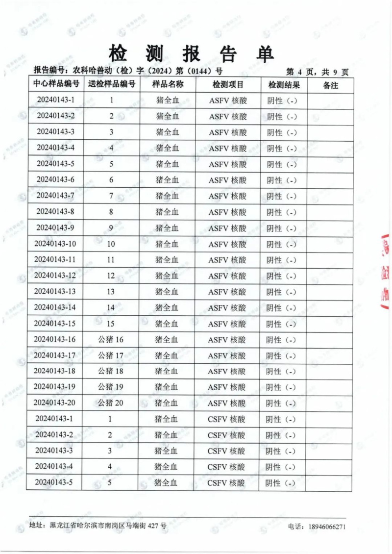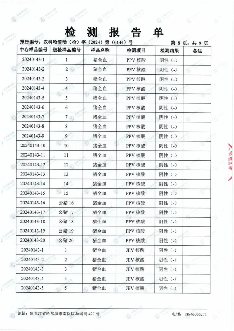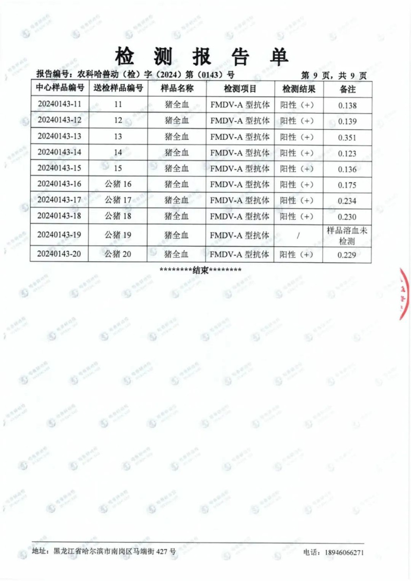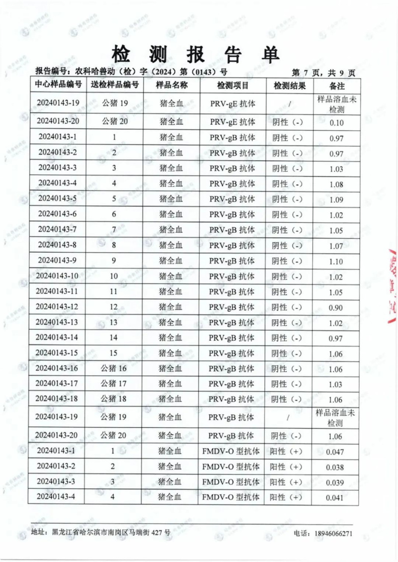 民望農(nóng)牧2024年1月份送哈獸研檢測(cè)6項(xiàng)疫病雙陰