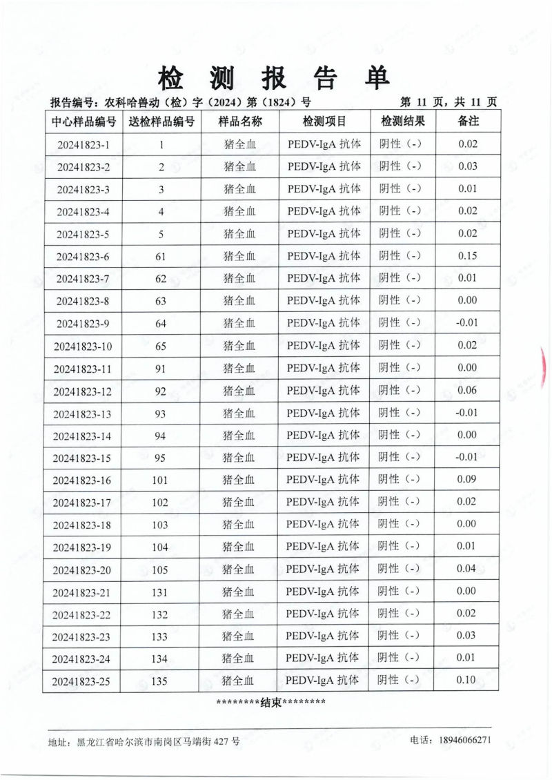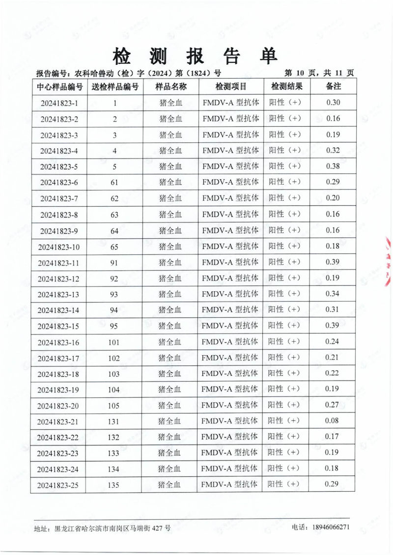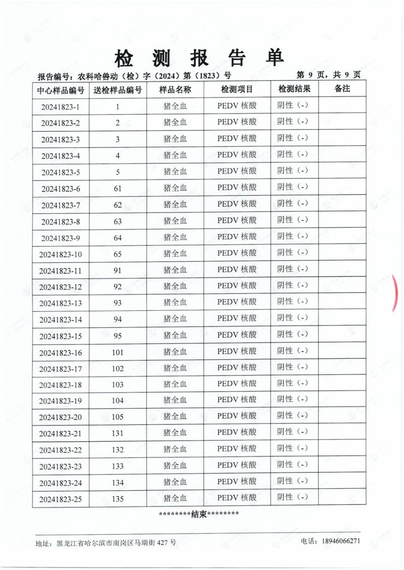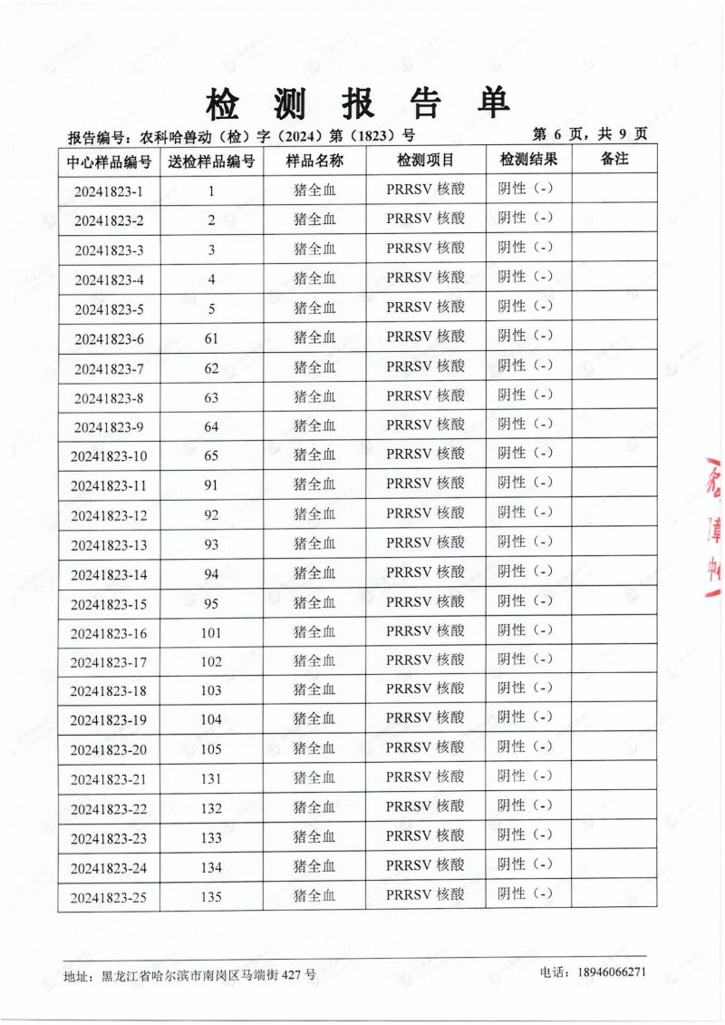 民望農牧2024年4月份送哈獸研檢測6項疫病雙陰