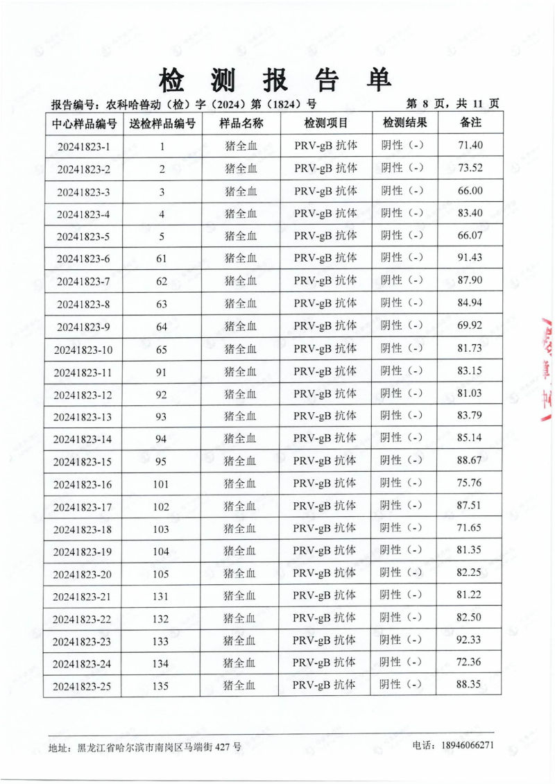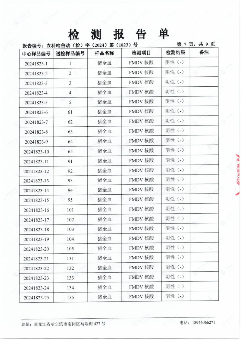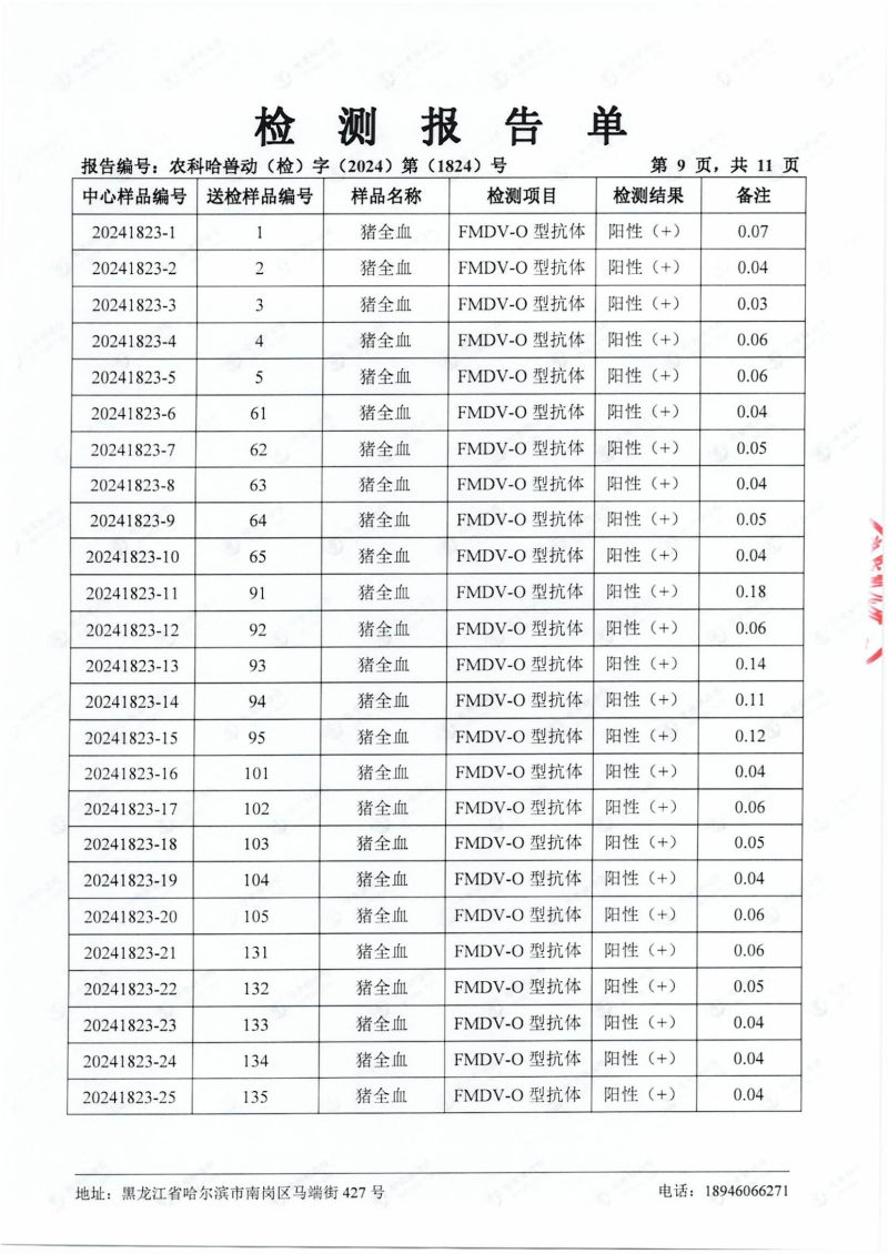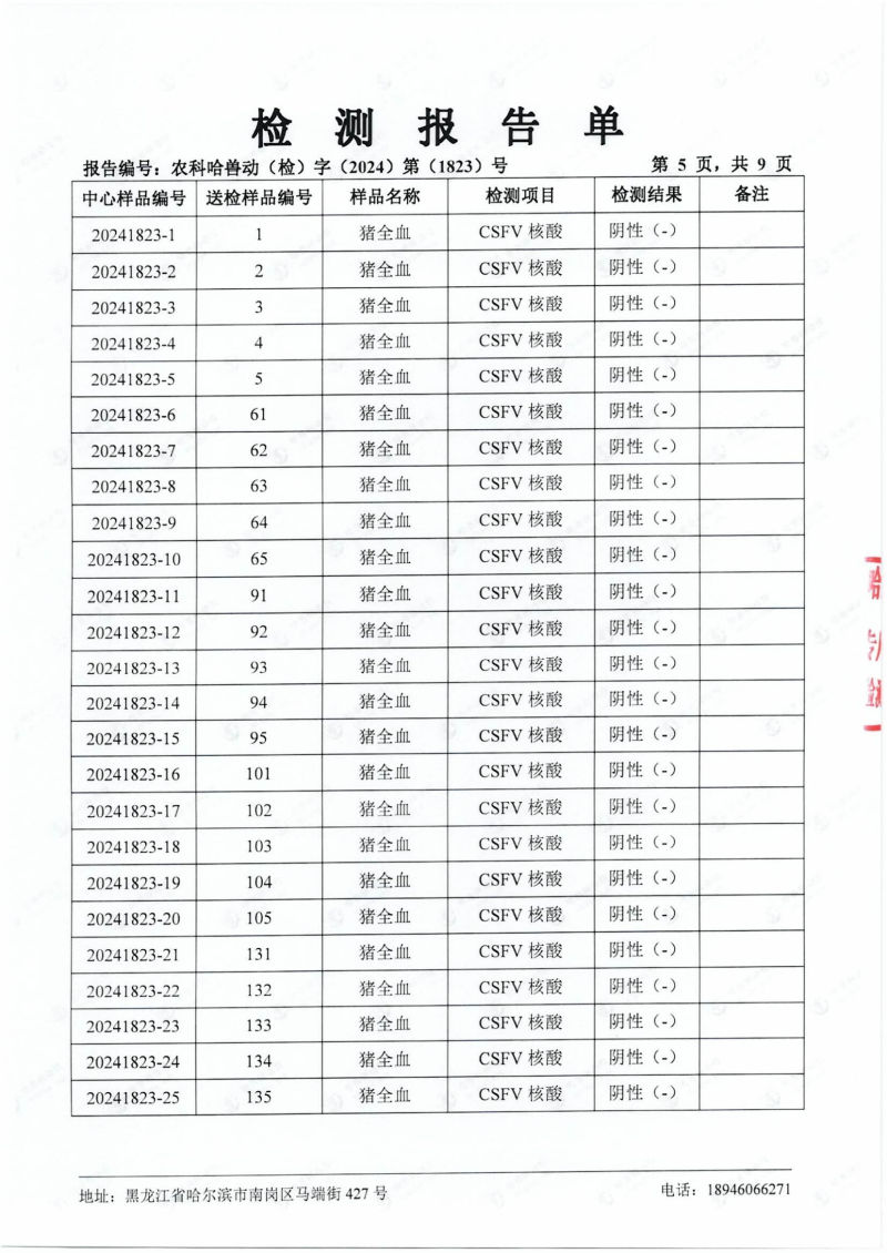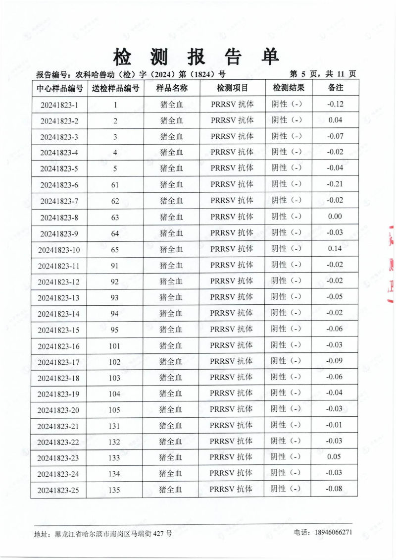 民望農牧2024年4月份送哈獸研檢測6項疫病雙陰