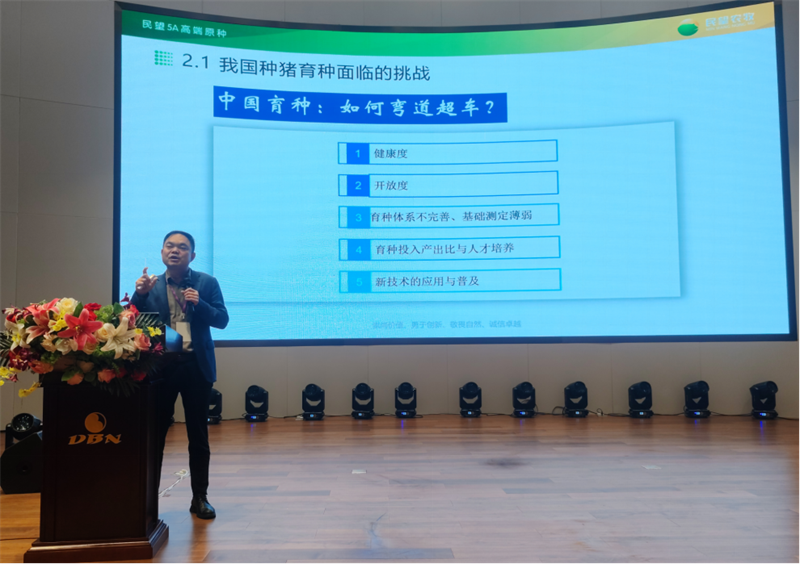 最后,索總也對種豬育種未來做了展望,結(jié)合企業(yè)自身發(fā)展提出了聯(lián)合發(fā)展的構(gòu)思,他提出建立民望“高健康、高繁、高長速、多肋骨”的產(chǎn)品特點,除了自身努力外,還要積極聯(lián)合高校、科研機構(gòu)、同行業(yè)上下游,共同發(fā)起聯(lián)合育種,各方資源充分互補,實現(xiàn)育種彎道超車,同時,歡迎同行業(yè)企業(yè)、機構(gòu)一起加入“中聯(lián)合育”聯(lián)合育種平臺共同努力,為養(yǎng)好中國豬,育好中國種而不懈努力。