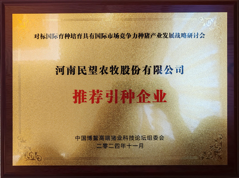 大會(huì)會(huì)務(wù)組對(duì)民望的扎實(shí)育種工作給予了肯定,并現(xiàn)場(chǎng)頒發(fā)了獲“優(yōu)秀種豬企業(yè)測(cè)定標(biāo)桿”“推薦引種企業(yè)”兩項(xiàng)大獎(jiǎng)。