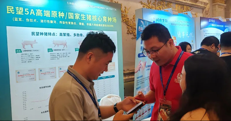 民望5A高端原種亮相大會(huì)布展區(qū),吸引了眾多參會(huì)嘉賓駐足參觀交流,并就保健康和種豬性能提升等話題進(jìn)行了深入探討和交流。