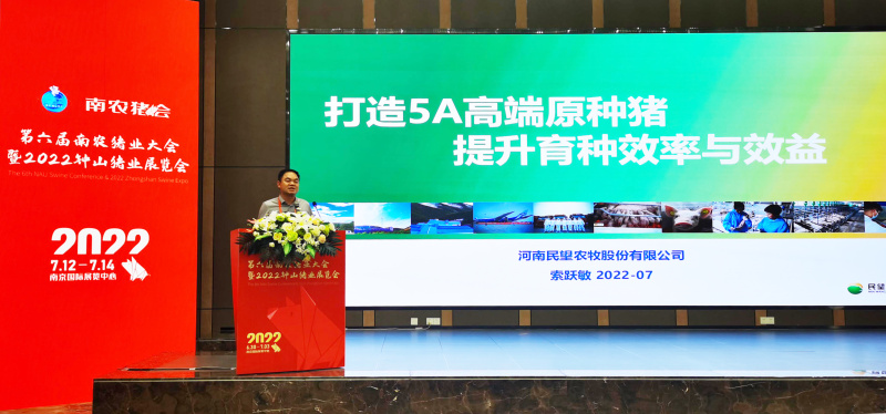 7月12-14日,民望農(nóng)牧受邀參加了南京農(nóng)業(yè)大學(xué)主辦的第六屆南農(nóng)豬業(yè)大會暨鐘山豬業(yè)展覽會,大會在南京鐘山展覽中心舉行,董事長索躍敏先生接受主辦方邀請,做了“打造5A高端原種豬,提升育種效率與效益”的主題演講。